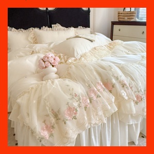 침대스커트 이불커버세트 순면 레이스 프린세스 스타일 부드러운 감촉의 침대커버 로맨틱한 인테리어 감성 침구세트